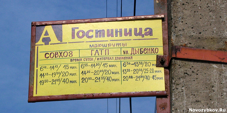 Отец рассказал, что в 50-е годы в Новозыбкове был один маршрут «Вокзал — Больница». Ходил, как и нынешний «Совхоз», но только прямиком через центральную площадь, не объезжая ее по Кубановской-Первомайской-Советской. Тариф был тогда поостановочный, по словам отца, 15 копеек за остановку (копейки «старые», до 10-кратной деноминации 1961 года).