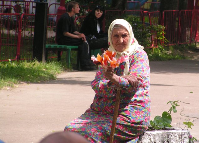 Бабушка замечательная! Давно за ней наблюдаю! Это уже своеобразный символ. Если вижу ее, значит, знаю, что все в городе в порядке )))
