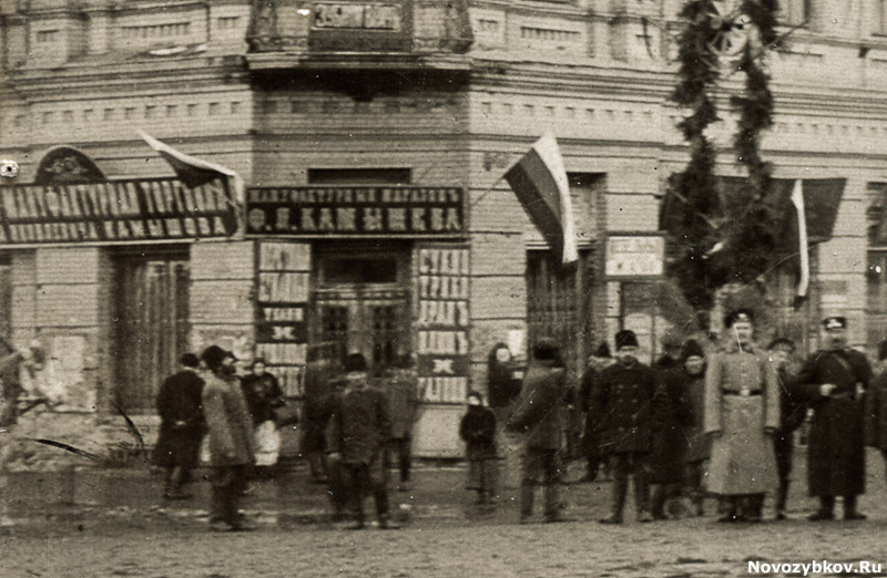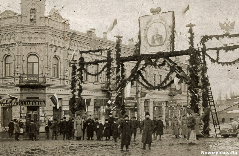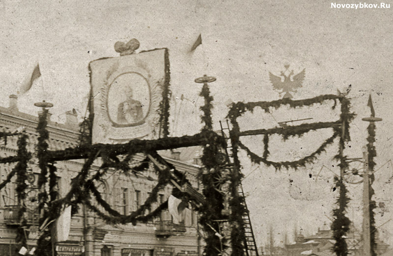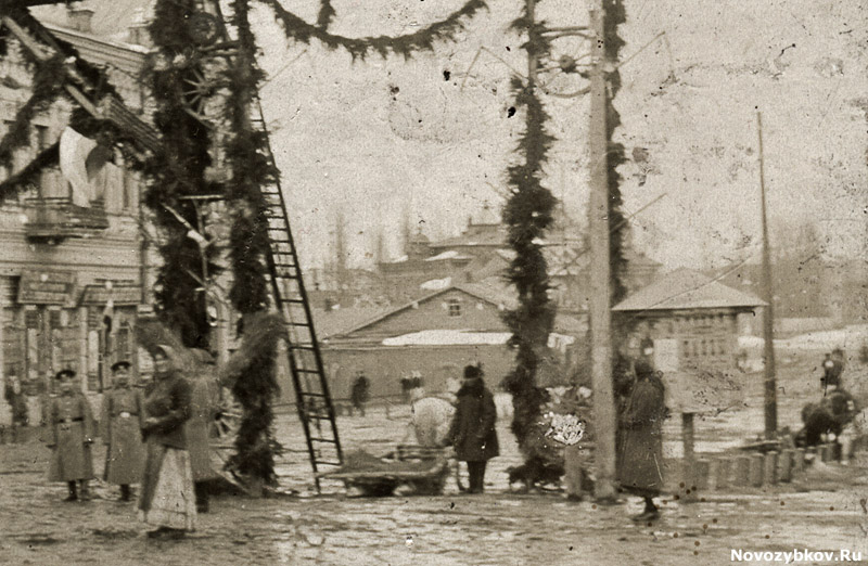 Торжественное празднование 300-летия царствования дома Романовых прошло по всей Российской империи 21 февраля (6 марта) 1913 года. Торжества были приурочены к дате избрания на царство в Москве боярина Михаила Феодоровича Романова в 1613 году. На фотографии запечатлен центр Новозыбкова в дни празднования.